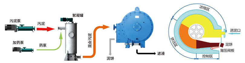 絮凝 | 包括外带可变速搅拌装置的絮凝器,可优化絮凝,减少聚合物的浪费 | 絮凝发生在离心机内部,不易控制,聚合物利用率低消耗量大,增加经费 |